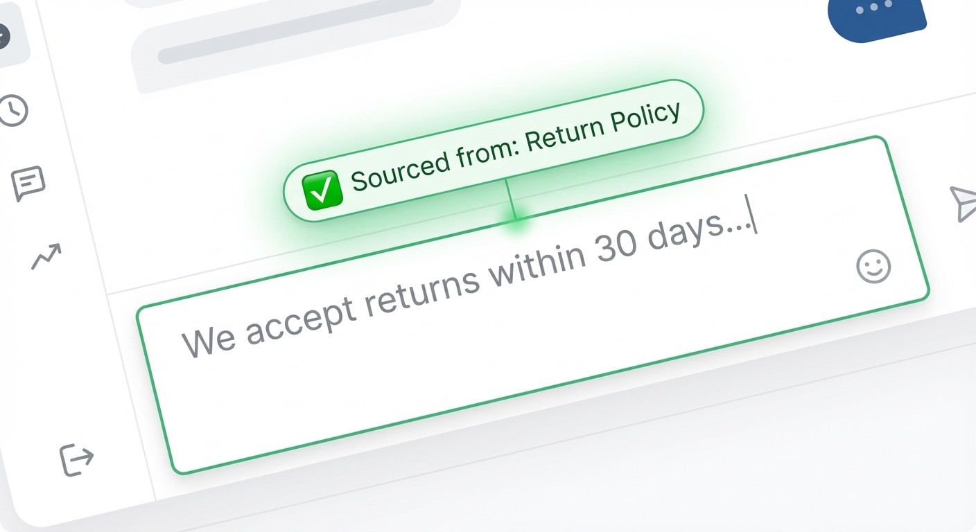 Stop Rogue Replies. AI drafts responses based strictly on your approved data—ensuring no one goes off-script, ever.